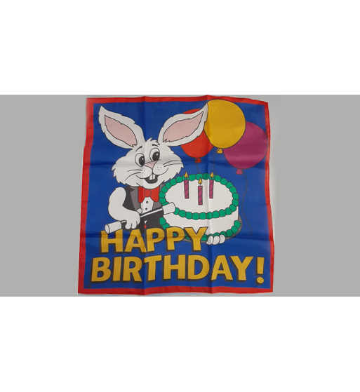 This high-quality silk is perfect for all kinds of magic routines. From stage performances to close-up illusions, this elegant 100% silk with a graphic of a rabbit with "Happy Birthday" text is an essential part of your next act!