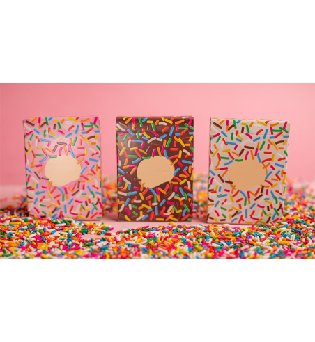 After looking at any of the three Papa Leon's Wicked Donuts Playing Card tucks, you'll be craving a donut of your own. All three tucks have embossed jimmies/sprinkles, with flour and baking tray details to resemble the real thing.