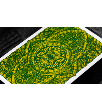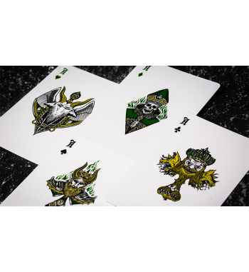 We are opening the entrance to the underworld, the deck reveals itself when you pull the outer sleeve, showing the entrance to the Inferno Playing Cards.