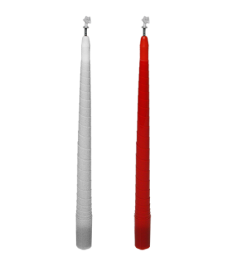 Magician presents a lit white candle; he blows it out and covers it with a silk and amazingly it completely changes color from white to red. Then just as magically the magician makes it vanish!