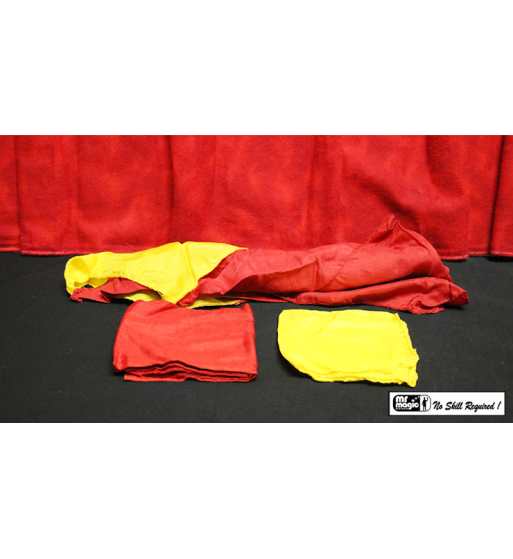 Vanish a silk handkerchief. Then tie two other silk handkerchiefs together. Two participants pull on the two silks and, magically, the vanished silk now appears TIED BETWEEN the two silks! Looks great! If you don't wish to vanish a silk, it's just as magical to tie two silks together and magically have a third silk appear between them. Beautifully made.