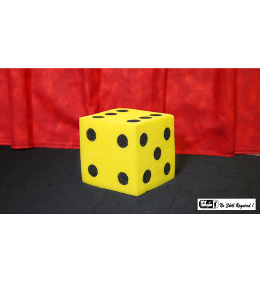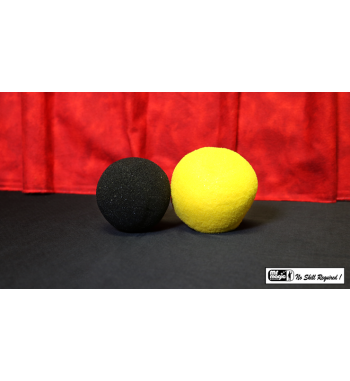 The magician shows two sponge balls, one yellow and one black -- one in each hand. The black ball is placed over the yellow ball into one closed hand. He waves his other hand over the balls. When the closed hand is opened, it is seen that both balls have now melded into a solid yellow die with black spots!