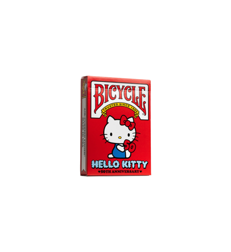 ¡Celebra 5 décadas de encanto adorable! Tanto si eres fan de toda la vida como si simplemente aprecias la ternura eterna de la niña favorita de todos, ¡la baraja Bicycle del 50.º Aniversario de Hello Kitty es para ti!