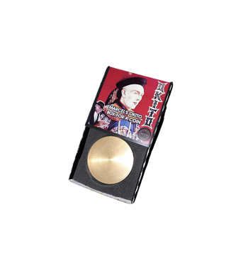 Esta caja estilo Okito para una sola moneda. Gracias a su tamaño, peso y morfología, permite al mago realizar movimientos completamente nuevos, lo que la hace única por su manejo revolucionario.