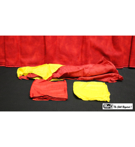 Haz desaparecer un pañuelo de seda. Luego, ata otros dos pañuelos de seda. Dos participantes tiran de las dos sedas y, mágicamente, ¡la seda desaparecida aparece ATADA ENTRE las dos sedas! ¡Se ve genial! Si no quieres que desaparezca una seda, es igual de mágico atar dos sedas juntas y que, mágicamente, aparezca una tercera entre ellas. ¡Un trabajo precioso!